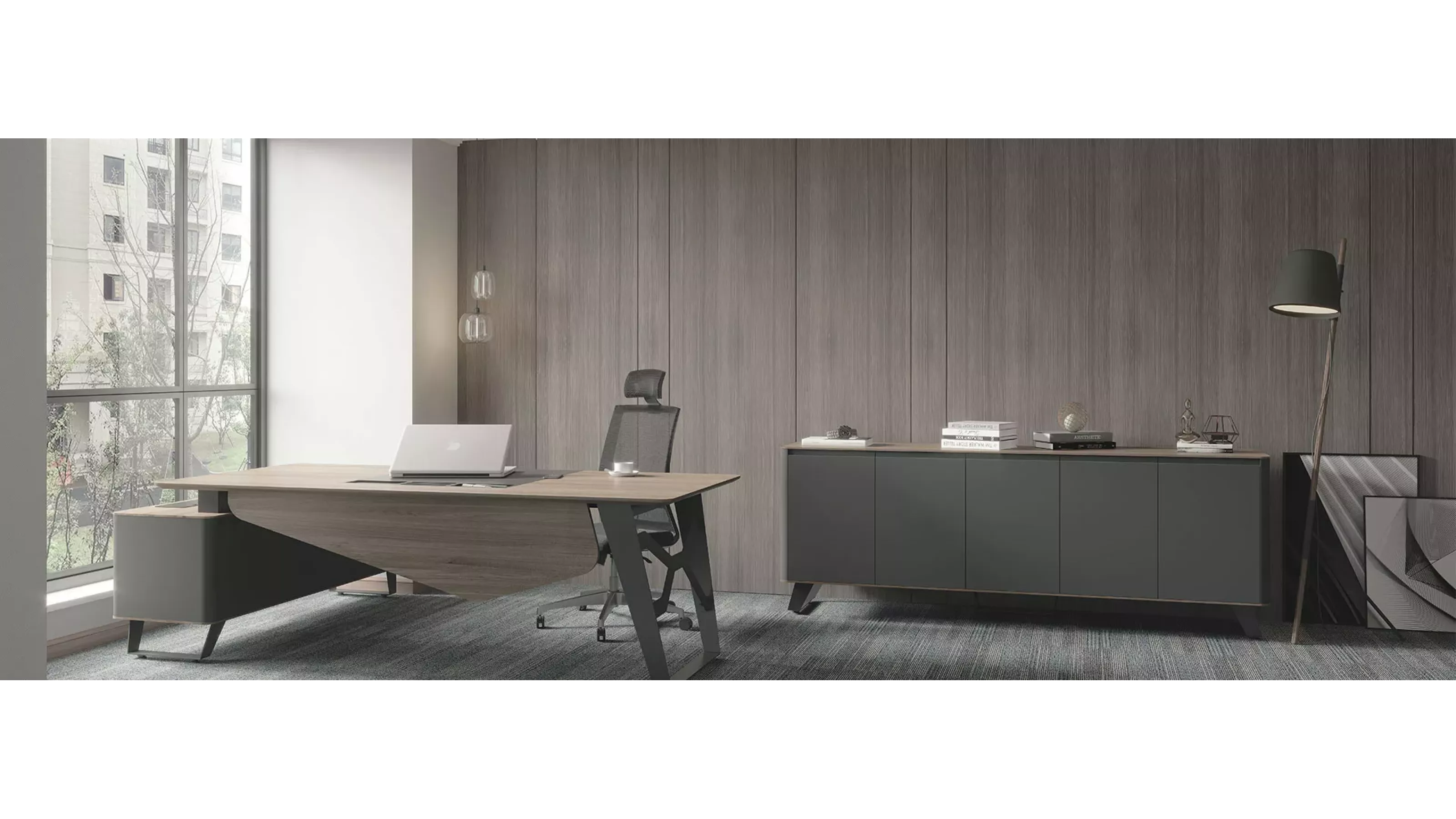 طقم أثاث مكتبي لادن 4 قطع - بني غامق ورمادي