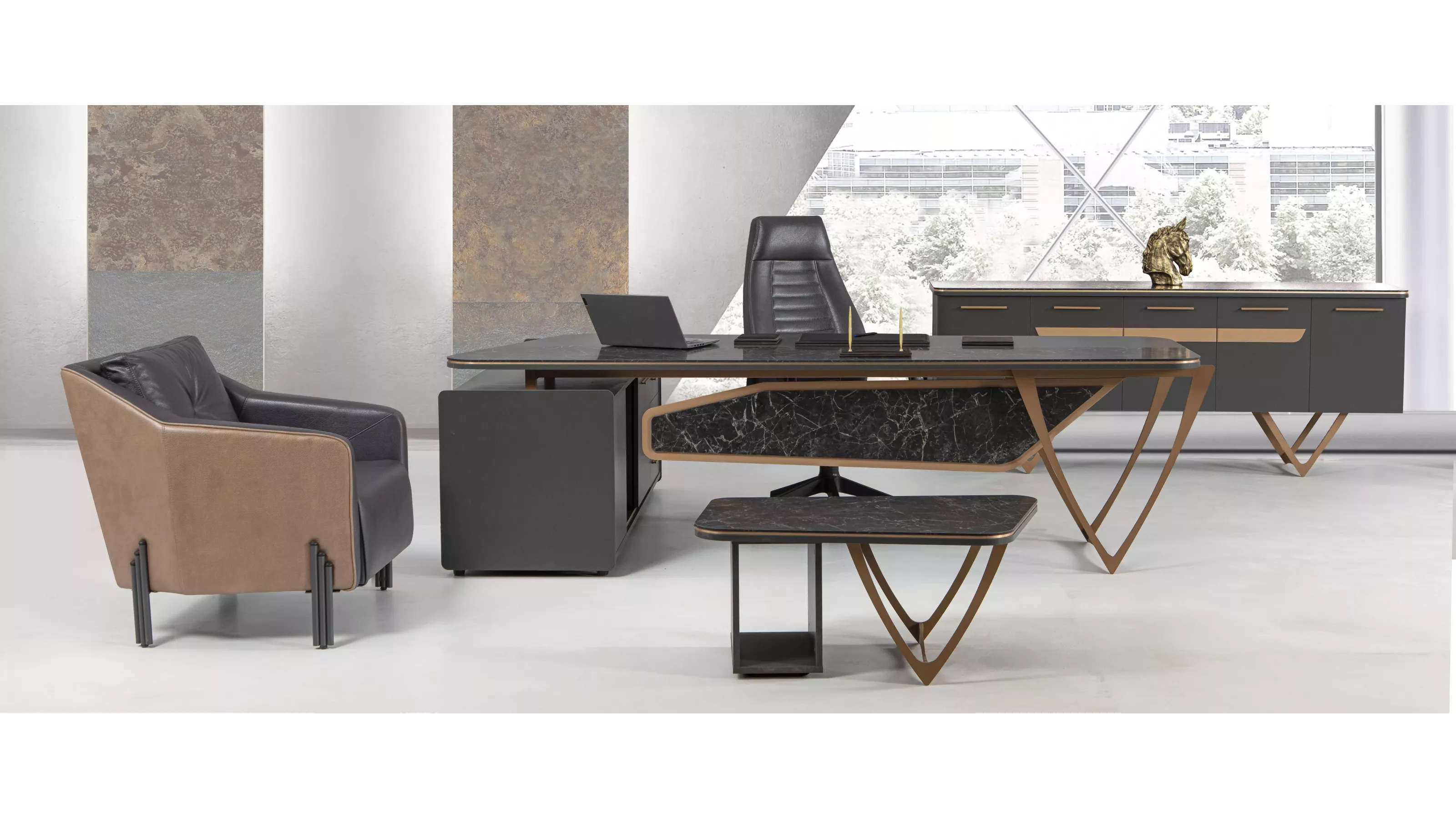 طقم أثاث مكتبي نيرفانا 3 قطع - بيج وأسود